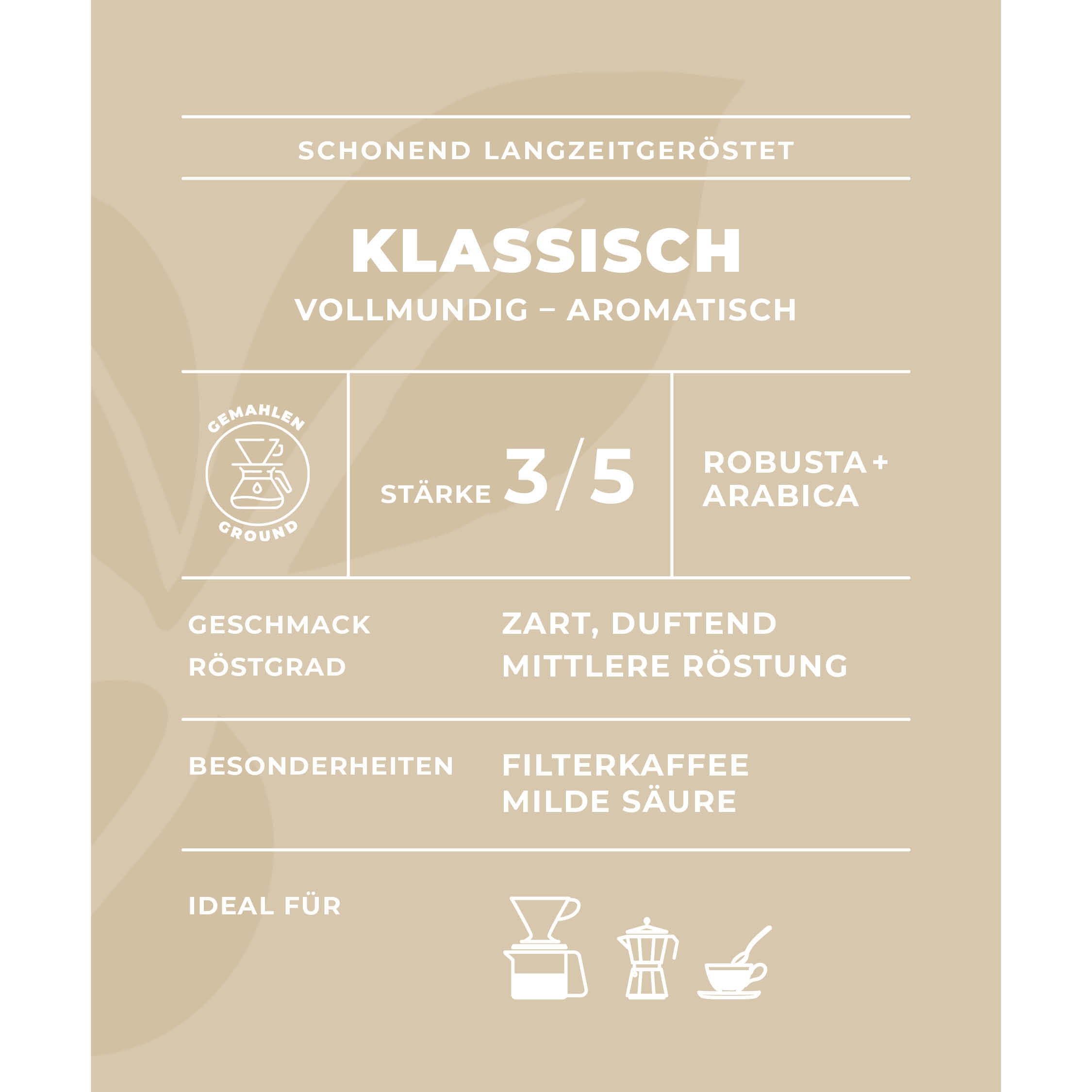 Für unseren wunderbar weichen Minges Filterkaffee Klassisch verwenden wir sorgfältig ausgewählte und aufeinander abgestimmte Arabica- und Robusta-Kaffeebohnen. Die Bohnen werden hell geröstet – für den typisch vollmundig-aromatischen Genuss.