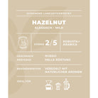 Erlesene Arabica- und Robusta Kaffees dienen als klassische Grundlage für unsere aromatisierten Kaffee-Spezialitäten. Zur Veredelung tragen ausschließlich natürliche Aromen bei, welche eine angenehme Haselnuss-Note verleihen. Eine genussvolle Abwechslung für jeden probierfreudige Kaffeeliebhaber!