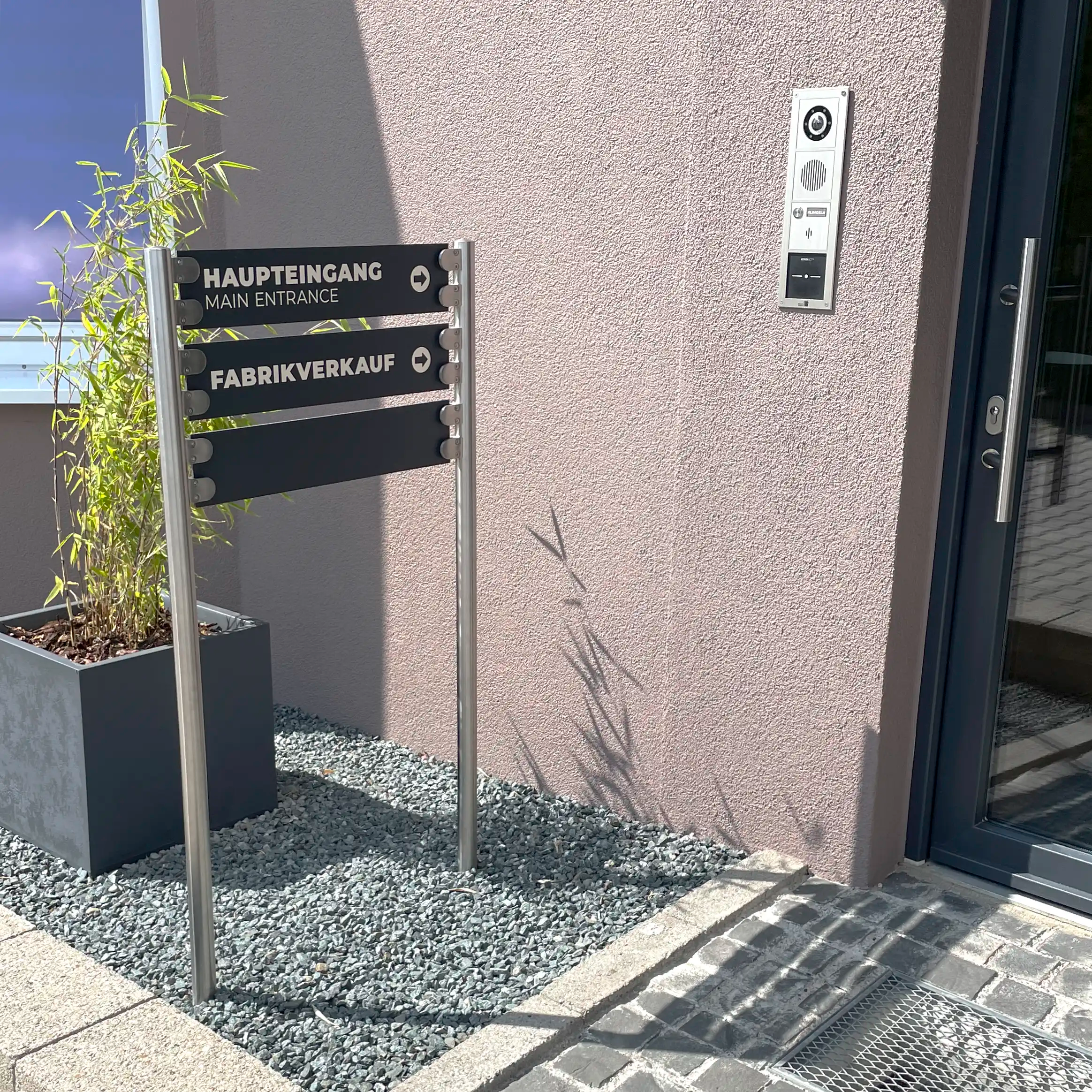 To get to the Minges factory outlet, first drive to the Minges headquarters at Industriering 17. There, you'll find visitor parking spaces right on the street where you can conveniently park your car. After parking, go to the green door and ring the bell to announce your arrival. Then proceed to the main entrance, ring the bell again, and wait for someone to open the door. Now you're ready for the factory outlet – enjoy browsing and shopping!